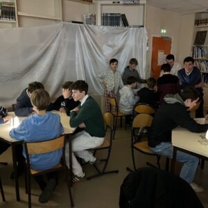 Jeudi 22 janvier 2026 s’est tenue au Cdi de Saint Bonnet la 4è participation à la Nuit de la Lecture. Cette année le thème national a été Villes et Campagnes. Dans une ambiance nocturne , 44 élèves de 6è et 5è ont put vivre des ateliers (dessin architectural, légo, puzzle, dégustation littéraire) sur la Ville animés par des élèves de 4è , de 1ère et de Terminale. Ils ont également assisté à une représentation de Mr Denis Deroux leur contant le quotidien de la vie de paysan en 1800 et écouter deux poèmes récités avec talent par Barnabé Walsh (élève de 3è) le tout au son de la guitare de Wandrille Slaes élève de Terminale. Je remercie également tous les adultes ayant contribué à ce moment .